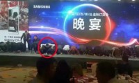從圖片看上,舞臺(tái)背景上有三星LOGO,以及石家莊金秋訂貨會(huì)等字樣,左邊有三星新款GalaxyC9Pro手機(jī)圖案。一眾疑似三星高管在舞臺(tái)上跪著,方向是底下的座位區(qū)。