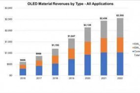 DSCC認(rèn)為OLED照明市場將快速增長(復(fù)合年增長率43%),但材料使用將維持小幅增長,2022年將達(dá)6900萬美元(高于2017年的1100萬美元)。