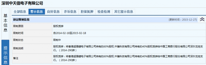 小編在《深圳信用網(wǎng)》上查閱中天信企業(yè)信息時發(fā)現(xiàn),中天信電子去年將香港超強(qiáng)健電子有限公司持有的60%股權(quán),中瀚科技有限公司持有的40%股權(quán)質(zhì)押給中國工商銀行股份有限公司深圳龍崗支行。同時,在2012年—2015年這三年期間,中天信分別以印刷機(jī)、回流焊、貼片機(jī)、切割機(jī)、光學(xué)檢測系統(tǒng)、SMT生產(chǎn)線等機(jī)器設(shè)備進(jìn)行擔(dān)保抵押,可見公司從2012年便開始出現(xiàn)資金周轉(zhuǎn)困難,公司經(jīng)營早已危機(jī)四伏!