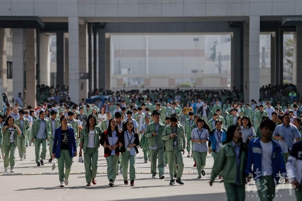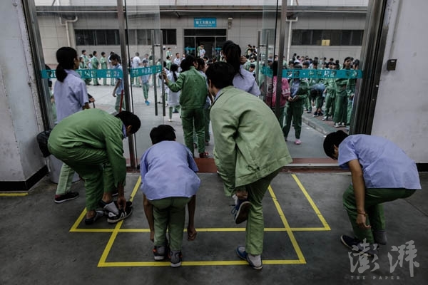 午休前,工人們列隊(duì)離開生產(chǎn)線,軍事化的管理是效率的保證。