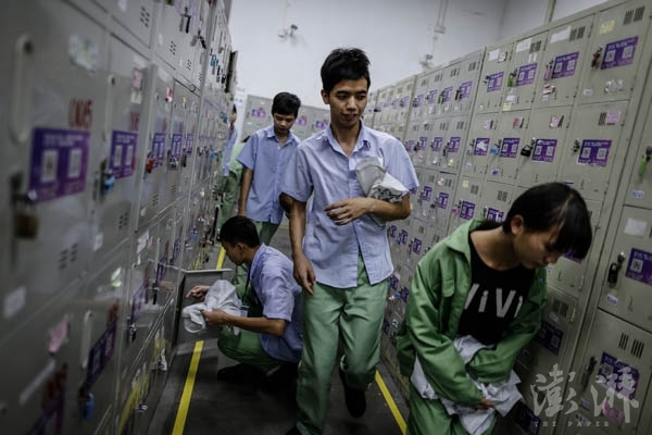 流水線上不乏技校實(shí)習(xí)生的身影。他們年齡雖小,手法卻很熟練。假期到了,這樣的實(shí)習(xí)生也多起來,能拿工資,又學(xué)手藝的園區(qū)生活對他們還是有很大吸引力,“這里太像我們學(xué)校了,不過還沒畢業(yè)就已經(jīng)厭倦啦”。