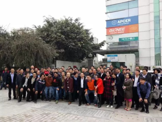 中國手機(jī)產(chǎn)業(yè)調(diào)研團(tuán)金立門口合影