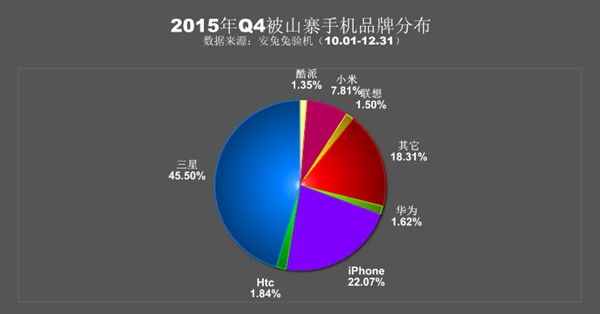 日前,安兔兔公布了2015年四季度山寨機調查報告。2015年Q4季度山寨機總量有所下降,山寨機的品牌、型號相比前3個季度有著明顯變化。iPhone被山寨的數量在Q4表現明顯,三星被山寨的數量依然最多,小米相比前3季度有著明顯下降。