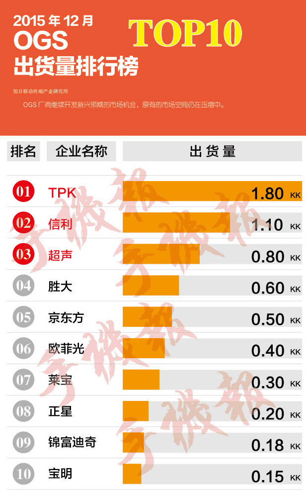 2015年12月OGS出貨量排行榜