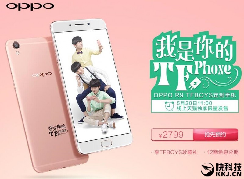 四葉草們,你們期待的掏...咳咳,TFphone終于要來啦!TFphone是根據(jù)OPPOR9定制而來的,依舊是5.5吋1080P顯示屏、MT6755處理器、1600萬像素前置攝像頭等等。只是外觀方面分為王俊凱版、王源版和易烊千璽版3個版本,并深度定制了一套專屬于TFphone的系統(tǒng)UI,包括壁紙、桌面圖片和手機(jī)界面等。售價(jià)為2799元,5月21日下午2點(diǎn)半在全國30家線下零售店限量發(fā)售,只有1200臺喲。