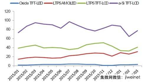 2015-2016年中國智能手機(jī)面板分技術(shù)類別出貨量(百萬片)