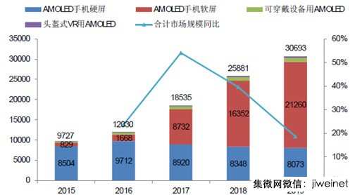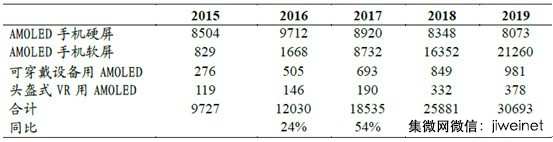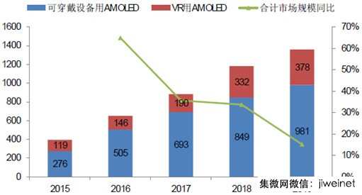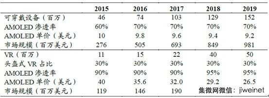 2015-2019年可穿戴和VR用AMOLED市場規(guī)模測算