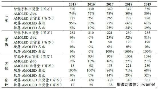 2015-2019年智能手機(jī)AMOLED面板出貨量預(yù)測
