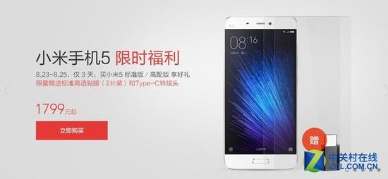 小米手機(jī)5降價(jià)至1799元