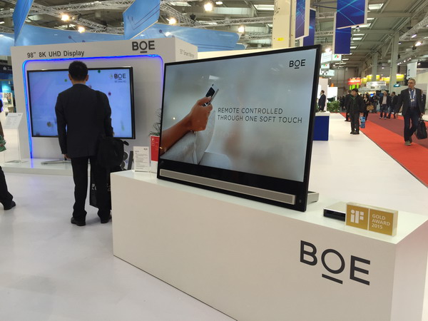 近日,2016德國(guó)柏林國(guó)際電子消費(fèi)品展覽會(huì)(IFA)上,BOE(京東方)今年推出的全球首款65英寸8K超高清顯示,獲得“IFA產(chǎn)品技術(shù)創(chuàng)新大獎(jiǎng)”,并再度引發(fā)國(guó)際市場(chǎng)對(duì)BOE(京東方)超高清顯示技術(shù)的關(guān)注和熱議。BOE(京東方)高級(jí)副總裁張宇出席頒獎(jiǎng)活動(dòng)并接受了CCTV新聞?lì)l道記者的采訪。