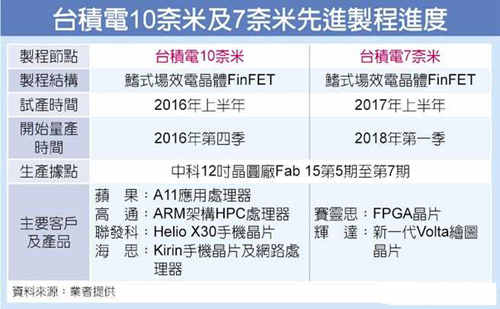 另外,臺(tái)積電7納米預(yù)估明年上半年可完成芯片設(shè)計(jì)定案,2018年第1季進(jìn)入量產(chǎn),目前包括可程式邏輯閘陣列(FPGA)大廠賽靈思(Xilinx)、繪圖芯片大廠輝達(dá)(NVIDIA)兩大16納米客戶,已確定跨過(guò)10納米制程世代,直接與臺(tái)積電在7納米進(jìn)行合作。