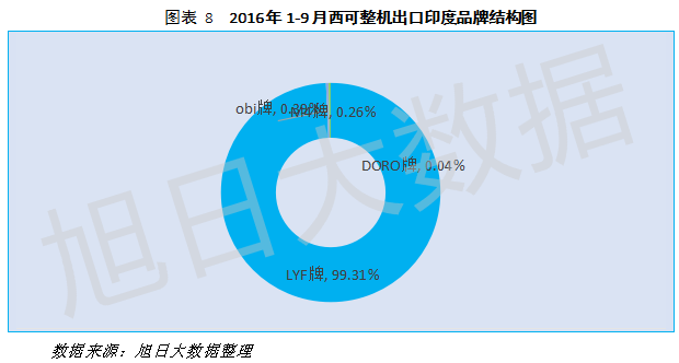 2016年前三季度,西可超六成的整機(jī)出口至印度,出口價(jià)值高達(dá)1.6億元,占出口總價(jià)值的七成。印度占據(jù)著西可出口量及出口價(jià)值的絕對高位,是西可不可或缺的競爭市場,這也是西可選擇在印度建廠的一個(gè)重要原因。