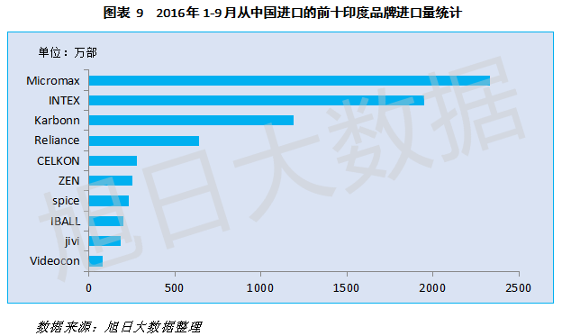 2016年前三季度,從中國進(jìn)口的前十印度品牌進(jìn)口總量超過七千萬部,其中Reliance 超過600萬部的進(jìn)口量僅位于第四。根據(jù)IDC的數(shù)據(jù)顯示,2016年前三季度,印度智能機(jī)出貨量8330萬部。雖然印度品牌進(jìn)口量與印度智能機(jī)出貨量兩個(gè)數(shù)據(jù)不能直接進(jìn)行比較,但放在一起還是比較有意思,給人很直觀的感覺是,印度本土品牌目前還大量依靠中國ODM。