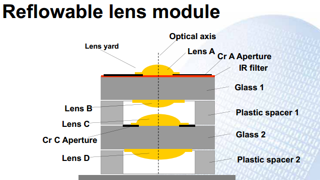 Heptagon的WLO鏡頭模組4P結(jié)構(gòu)。