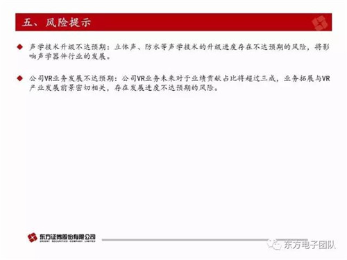 聲學技術升級不達預期;公司VR業(yè)務發(fā)展不達預期。