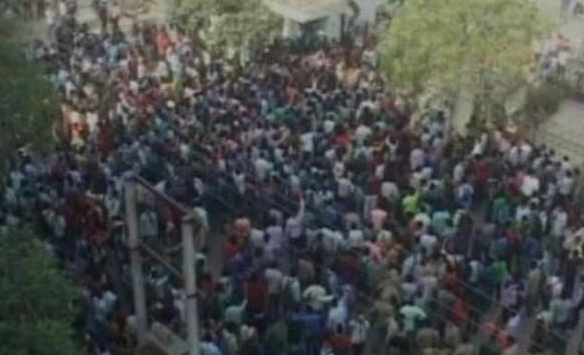 圖為印度人聚集抗議OPPO“中國經(jīng)理撕毀印度國旗”