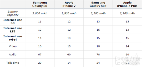 三星S8和S8+搭載2K顯示屏,電池分別是3000mAh和3500mAh,搭載性能強(qiáng)且功耗低的10nm芯片。但據(jù)媒體報(bào)道,無(wú)論是根據(jù)三星官網(wǎng)給的S7 edge對(duì)比還是實(shí)測(cè),S8系列的續(xù)航都有了1-2小時(shí)的縮水,這點(diǎn)讓重度智能機(jī)用戶(hù)很抓狂。