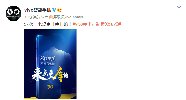近日,vivo 官方微博低調(diào)地曬出了一張預(yù)熱海報(bào),海報(bào)上赫然寫著“ vivo Xplay6 庫里定制版 來點(diǎn)更庫的”??磥恚^ Xplay5 美國隊(duì)長定制版之后,vivo 即將要推出 Xplay6 的庫里專屬定制機(jī)了。