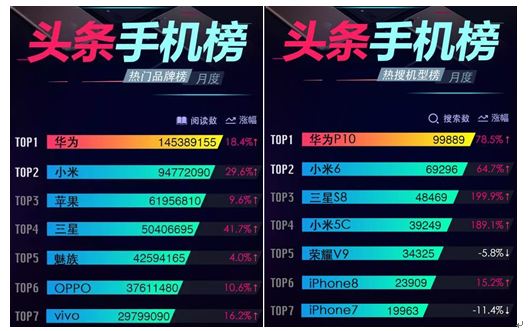同時在《今日頭條》公布的三月份“頭條手機榜”中,華為手機品牌和P10均排在熱門手機榜首,并關(guān)注度總量上保持大幅度領(lǐng)先。