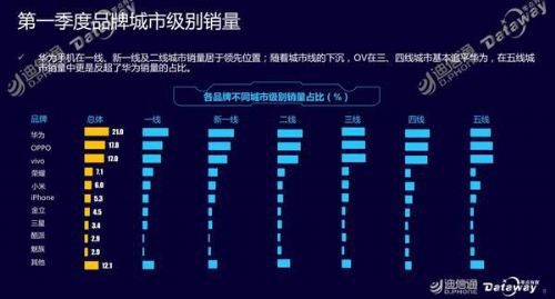 在品牌區(qū)域銷量方面,從報(bào)告數(shù)據(jù)中不難看出,華為手機(jī)在華北、華東、華中、華南區(qū)域的銷量有限比較明顯;在品牌城市級(jí)別銷量方面,華為手機(jī)在一線、新一線及二線城市銷量居于領(lǐng)先位置,隨著城市線的下沉以及華為“千縣計(jì)劃”的不斷推進(jìn)實(shí)施,華為有機(jī)會(huì)在一到五線城市獲得更高的滲透率。
