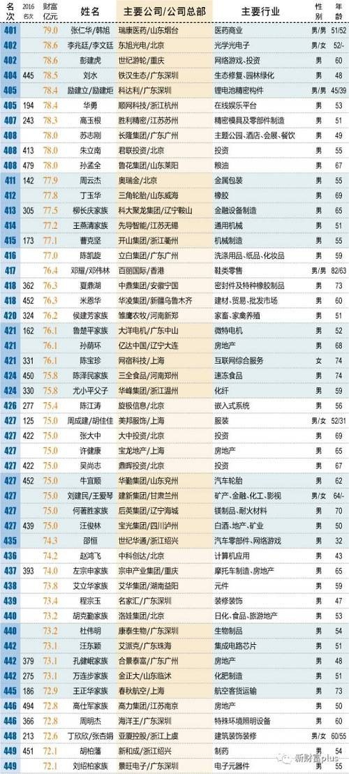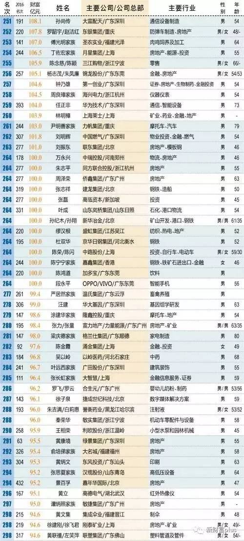 裕同科技首次上榜 王華君及其妻子吳蘭蘭排名第110位