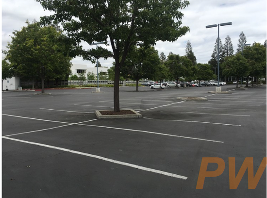 同一天,馬路對面的另外一家科技公司停車場卻是停得滿滿當當。