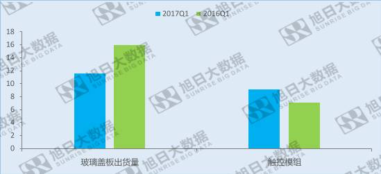 圖表2 2016-2017星星科技一季度玻璃蓋板及觸控模組數(shù)據(jù)統(tǒng)計(jì)(百萬(wàn)片)