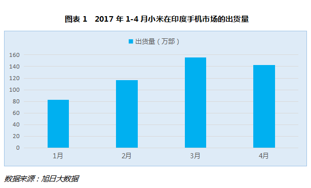 而在印度發(fā)展的國產(chǎn)手機品牌中,小米的出貨量目前已經(jīng)上升到第一名的位置!據(jù)旭日大數(shù)據(jù)監(jiān)測,自2017年1月開始,小米在印度的出貨量一直在增長,3月小米在印度的出貨量近156萬部,4月雖然較3月份有小幅下滑,但出貨量依舊強勢,約143萬部。
