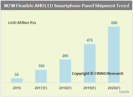 全球柔性AMOLED出貨預(yù)測(cè)