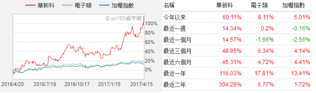 截止4月21日,華新科股價漲幅達到60.11%!