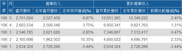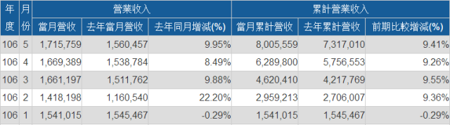 而從營收方面來看的話,國巨近兩個月的營收與去年同期相比都有所上升,尤其是5月份,其營收與去年同期相比更是上漲了6.87%!截至目前的前五個月營收累計與去年同期相比也上漲了2.45%!