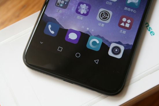 機(jī)身正面搭載一塊5.5英寸屏幕,屏幕聽筒左右依次為2000萬像素前置攝像頭、呼吸燈、柔光補(bǔ)光燈、光線/距離傳感器。底部并未設(shè)置虛擬按鍵,而是將按鍵隱藏于屏幕導(dǎo)航欄,所以不用擔(dān)心占用顯示面積,空余的下巴方便用戶對(duì)手機(jī)的抓持而不用擔(dān)心按鍵的誤觸。