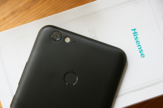 海信手機(jī)H10采用后置指紋識(shí)別方案,單手握持時(shí)食指剛好夠到模組位置。后置攝像頭略有凸起,好在鏡頭周圍有一圈金屬環(huán)保護(hù)著鏡面,這樣放置在桌上就不用擔(dān)心磨花了。