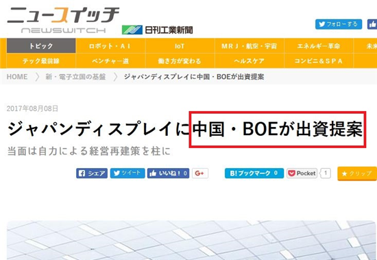 根據(jù)日刊工業(yè)新聞8日報導(dǎo),日本顯示器(JDI)向中國面板軍團求助,深天馬集團已率先出擊提交出資預(yù)案,正考慮收購日本官民基金“產(chǎn)業(yè)革新機構(gòu)(INCJ)”所持有JDI的35%股權(quán)。此外,中國另外兩大面板集團京東方、華星光電也已和JDI進行接觸。