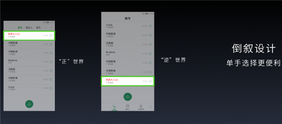 系統(tǒng)交互上還采用了重力設(shè)計的交互方式,改變了165項交互方式,使得單手操作更加方便,比如在新建聯(lián)系人時,信息會自動下沉到最下方。并且采用了NEOsmart智能引擎,系統(tǒng)更加流暢。