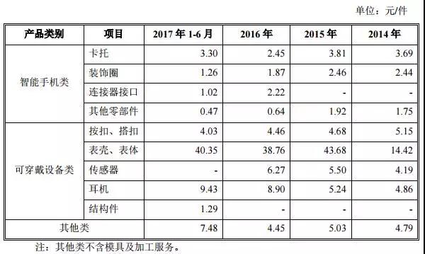 細(xì)看其在智能手機(jī)市場產(chǎn)品出貨量,出貨量最大的當(dāng)屬卡托以及連接器接口,而據(jù)其公布的單件產(chǎn)品價(jià)格粗略計(jì)算的話,其今年上半年卡托業(yè)務(wù)營收大概為6600萬,連接器接口業(yè)務(wù)營收大概為1.22億元,其他零部件營收大概為1200萬,而手機(jī)市場其上半年整體營收為2.02億元,換而言之,在智能手機(jī)市場,其主要營收為連接器接口以及卡托!值得注意的是,從單價(jià)來看,除了卡托今年上半年的單價(jià)與去年相比有所提高以外(仍不及2015年和2014年),其余產(chǎn)品單價(jià)均處于下降狀態(tài)!
