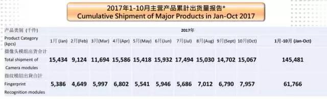 其中,攝像頭模組的期間銷售數(shù)量達到約8319萬件,同比增長約12.3%。指紋識別模組的銷售數(shù)量達到約3432萬件,同比增長約23.6倍。而其毛利率也有所提升,據(jù)其表示,產(chǎn)品毛利率有明顯提升,主要原因有三方面:
