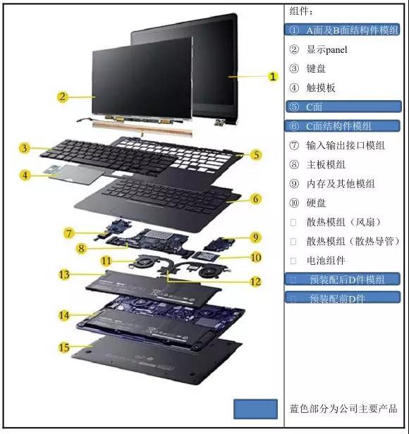 此外,據(jù)招股說明書披露,春秋電子為主流消費電子產(chǎn)品廠商提供精密結(jié)構(gòu)件模組產(chǎn)品,其中以筆記本電腦結(jié)構(gòu)件模組為主。筆記本電腦結(jié)構(gòu)件模組包括四大件:背蓋、前框、上蓋、下蓋以及金屬支架,上述結(jié)構(gòu)件模組在裝配筆記本電腦過程中需容納顯示面板、各類電子元器件、轉(zhuǎn)軸等部件,其結(jié)構(gòu)性能對制造精密度提出了較高的要求。同時由于其還具有外觀裝飾功能,故該類產(chǎn)品對生產(chǎn)企業(yè)的設計能力亦有較高的要求。