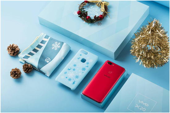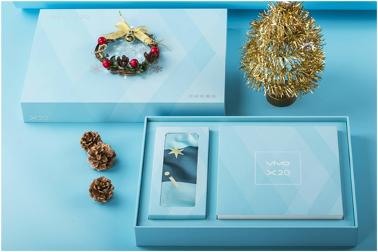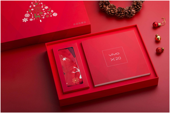 ▲vivo X20星耀紅“雨V同行”圣誕限量版禮盒
