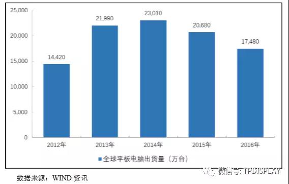 自平板電腦問(wèn)世以來(lái),人們對(duì)電子計(jì)算機(jī)設(shè)備的傳統(tǒng)觀念也發(fā)生了改變,搭載觸摸屏的平板電腦行業(yè)開(kāi)始蓬勃發(fā)展起來(lái)。但是受到大屏幕、功能先進(jìn)的智能手機(jī)流行的沖擊,2014年平板電腦全球出貨量增幅開(kāi)始放緩,2015年、2016年平板電腦出貨量均較前一年度有所下降。2012-2016年,全球平板電腦出貨量情況如下圖所示: