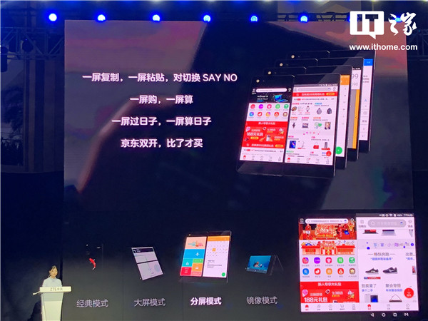 鏡像模式則解決了多人分享同一手機(jī)屏幕的不便,兩塊屏幕提供了面對面分享場景體驗,讓面對面的兩群人同時分享到同一內(nèi)容、交互聯(lián)動的工作和娛樂。