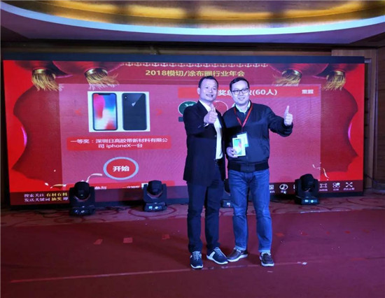 深圳日高膠帶新材料有限公司贊助的iphone X作為宴會(huì)一等獎(jiǎng),由深圳日高膠帶新材料有限公司吳總為幸運(yùn)兒抽獎(jiǎng)。