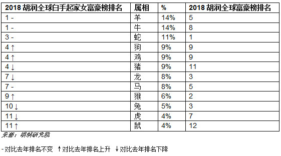 在今年全球白手起家女富豪榜上,仍然是羊和牛表現(xiàn)最佳,并列第一,蛇保持第三,鼠和虎表現(xiàn)最差。全球白手起家女首富周群飛屬狗。有趣的是,在《2018胡潤全球富豪榜》上,蛇排第一,鼠和豬排名最后。
