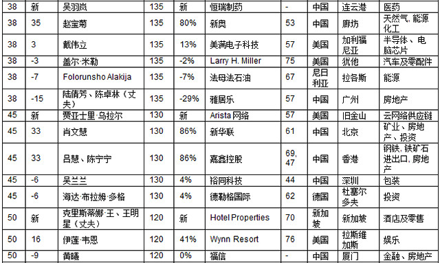 平均財富155億元,與去年相同。平均年齡58歲,比去年大一歲,比全球富豪榜的平均年齡小5歲。