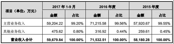 2016-2017年前三季度元盛電子主營業(yè)務(wù)收入構(gòu)成