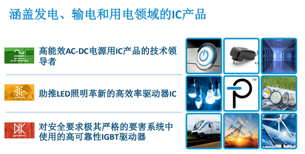 作為高壓功率集成芯片領域的先驅,Power Integrations業(yè)務主要劃分為3大塊:首先是電源管理芯片,其次是LED驅動芯片,其三則是對安全要求極其嚴格的要害系統(tǒng)中使用的高可靠性IGBT驅動器!