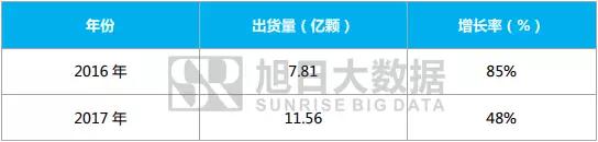 圖表2  2016-2017 年全球指紋模組出貨量及增長率