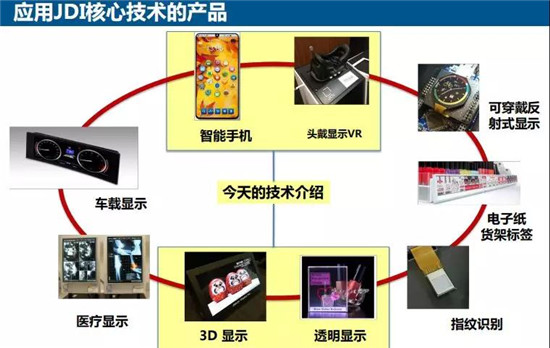 在核心技術(shù)方面,JDI則圍繞智能手機(jī)、頭戴顯示VR、可穿戴反射式顯示、電子紙貨架標(biāo)簽、指紋識(shí)別、透明顯示、3D顯示、醫(yī)療顯示、車載顯示等眾多領(lǐng)域展開!