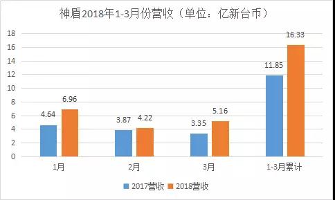神盾2018年開年頭一月的營收數(shù)據(jù)便到達(dá)最近12個(gè)月的峰值,單月營收達(dá)6.69億新臺(tái)幣,增長十分迅猛,此后2、3月均實(shí)現(xiàn)了不同幅度的增長,3個(gè)月整體營收累計(jì)為16.33億,比去年的11.85億上漲37.81%。值得一提的是,2017年,神盾全年實(shí)現(xiàn)營收47.31億元,年增183%,稅后凈利5.93億元,年增420%。