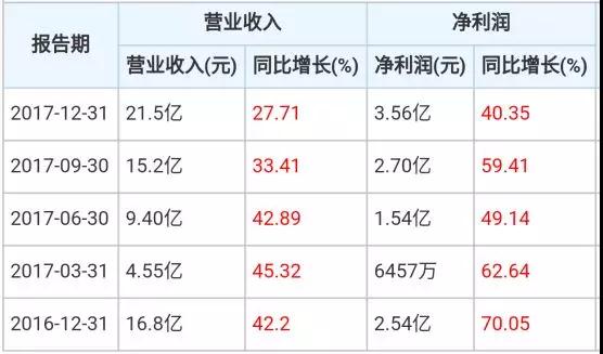 水晶光電2017年年報(bào)顯示,其營(yíng)業(yè)收入21.5億元,同比增長(zhǎng)27.71%;歸屬于上市公司股東的凈利潤(rùn)3.56億元,同比增長(zhǎng)40.35%。